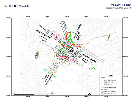 VANCOUVER, BC, November 23, 2022 – Tudor Gold Corp. (TSXV: TUD) (Frankfurt: H56) (the “Company” or “Tudor Gold“) is pleased to present the ninth and final set of drill results for the 2022 exploration program (the “Program”) at their flagship property, Treaty Creek, located in the heart of the Golden Triangle of Northwestern British Columbia.