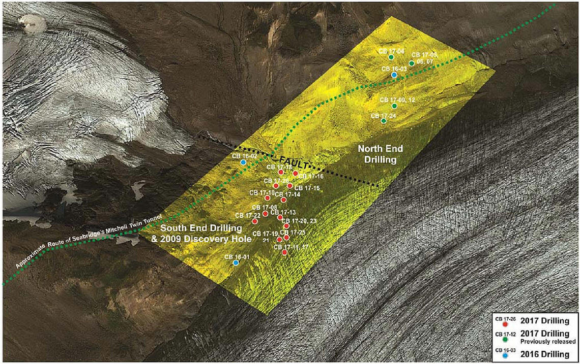 TUDOR GOLD Corp. (TSXV: TUD) (FSE: TUC) (the “Company” or “TUDOR GOLD”) is pleased to report on an additional 17 holes from its 27-hole, 2017 drill program on the Copper Belle zone of the Company’s Treaty Creek property in north-western B.C.